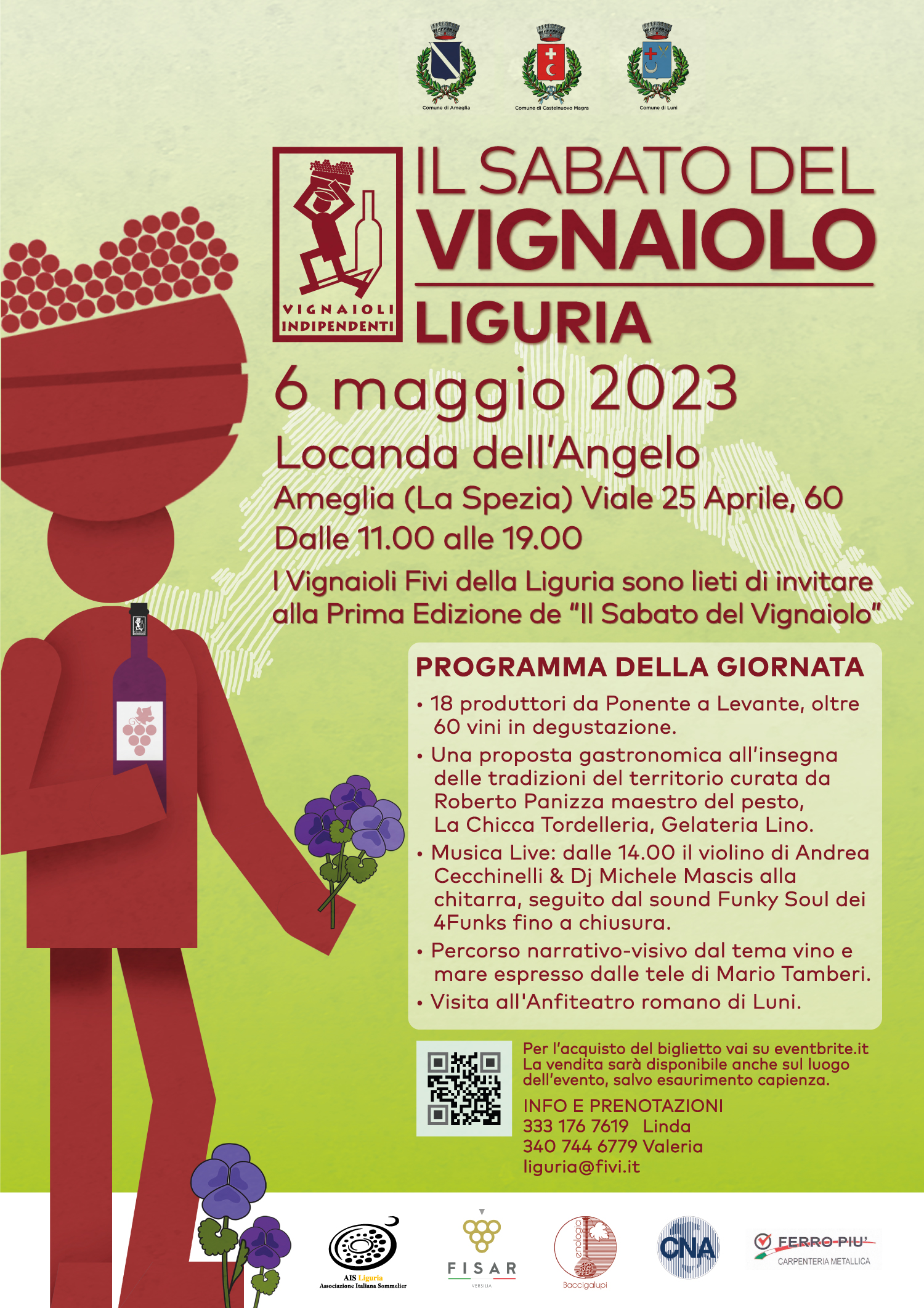 Sabato 6 maggio 2023 presso la Locanda dell'Angelo in località Ameglia dalle ore 11:00 alle ore 19:00 si svolgerà la rassegna "Il Sabato del Vignaiolo"