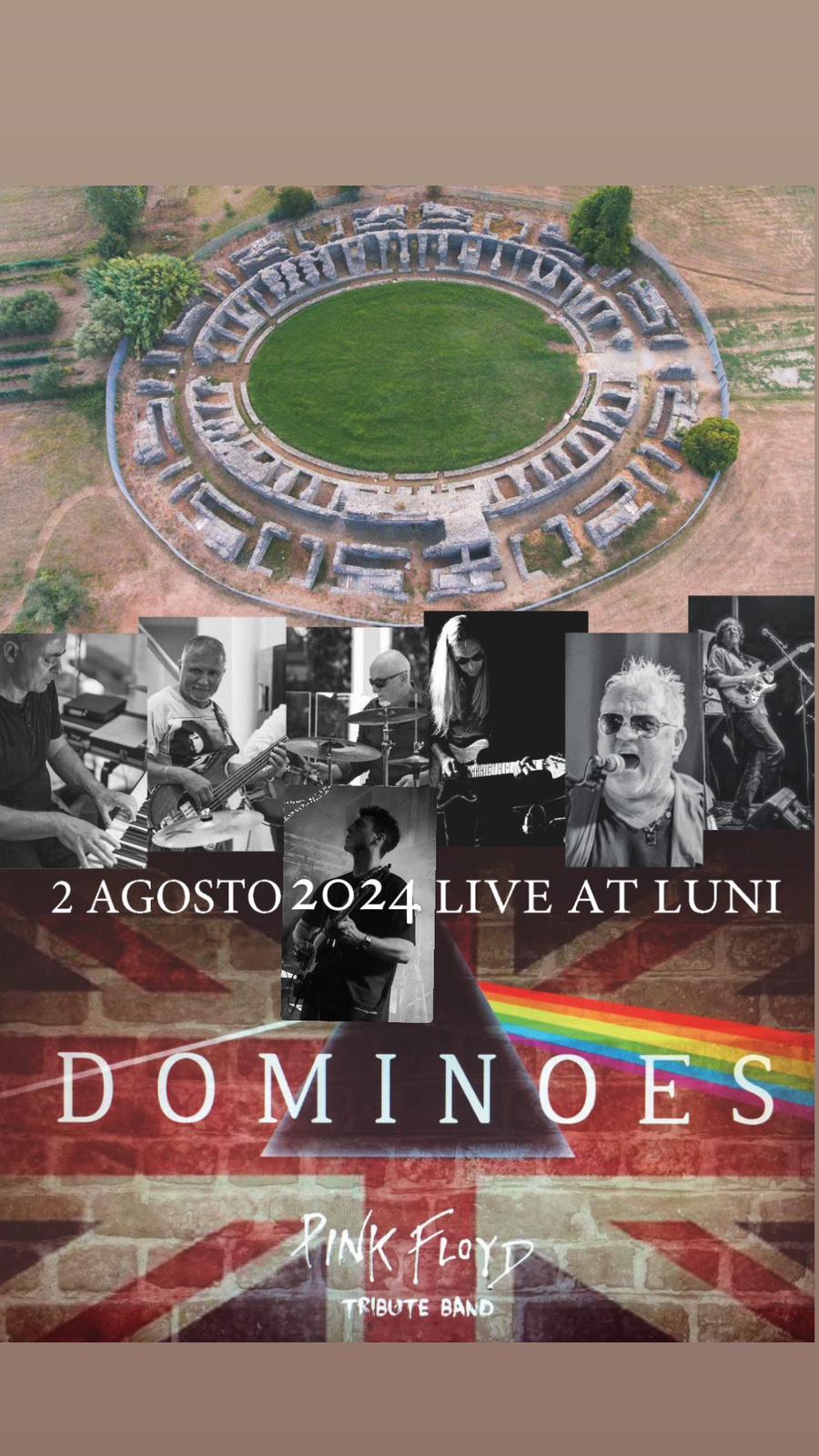Venerdì 2 agosto alle ore 21 all' Anfiteatro di Luni arriva “DOMINOES” con lo speciale tributo ad una delle band più iconiche della storia della musica i Pink Floyd.