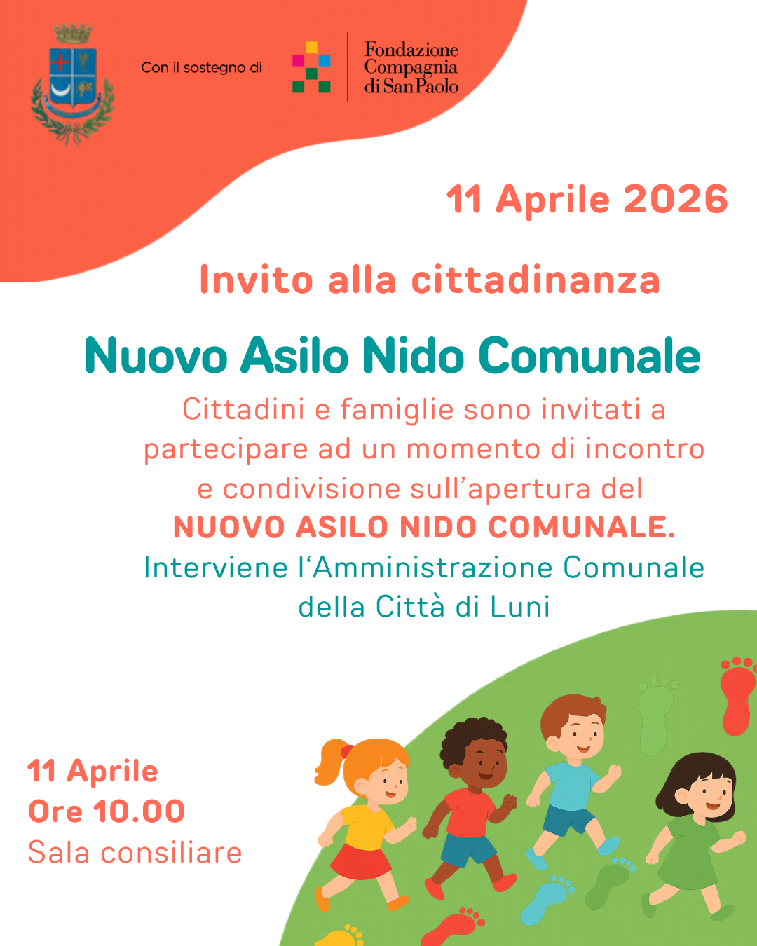 Tutte le famiglie sono invitate a partecipare all'incontro informativo del 11 aprile 2026 alle ore 10.00 presso la Sala Consiliare del Comune di Luni sita in Via Castagno 61.
