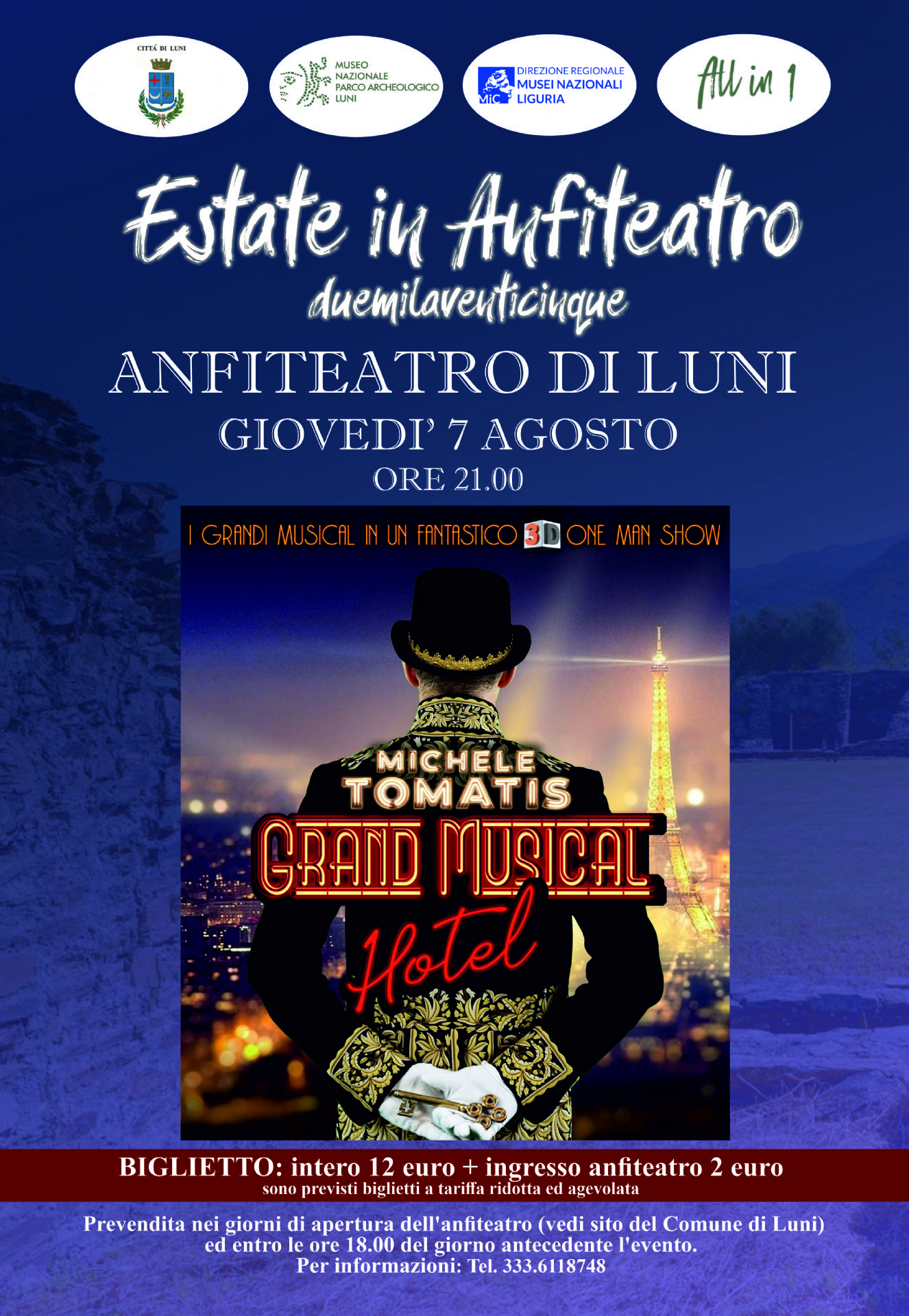 Un favoloso viaggio musicale attraverso le più belle canzoni mai messe in scena nei teatri di tutto il mondo: un grandioso MUSICAL TRIBUTE SHOW dove l’unico protagonista in scena è lo showman Michele Tomatis. Un uomo, un artista, che gioca con la sua figura letteralmente attraverso un elemento tecnologico e scenografico che catalizza l’attenzione sul protagonista ed i diversi mondi che quest’ultimo riesce a vivere e a trasmettere grazie alla sua coinvolgente energia e al suo show unico. Lo spettacolo è vivace e dinamico, cattura l’attenzione del pubblico e lo intrattiene attraverso l’ottima commistione di elementi artistici: musica, canto, danza, effetti visivi 3D, trasformismo, scena!
