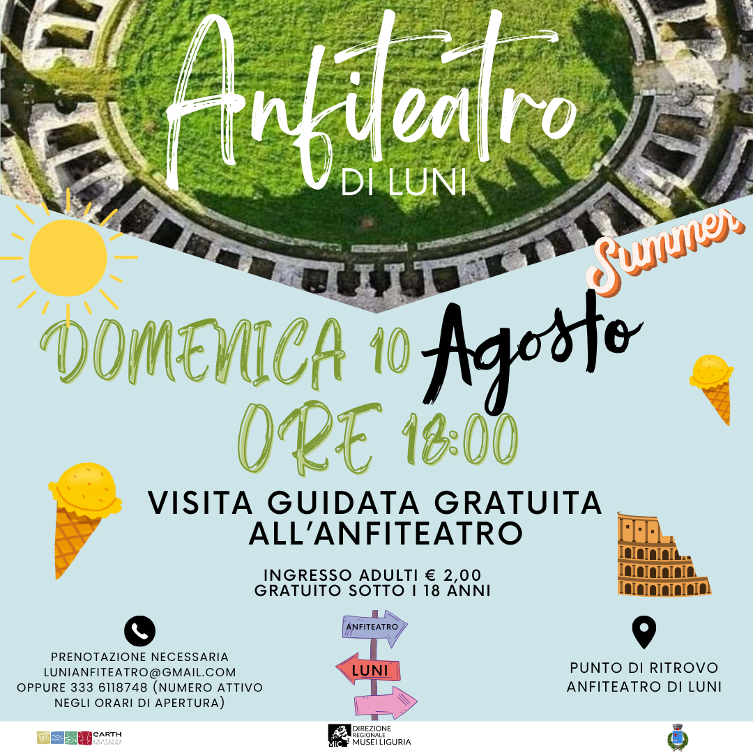 Domenica 10 Agosto 2025 alle ore 18.00. Visita Guidata gratuita all' Anfiteatro Romano
