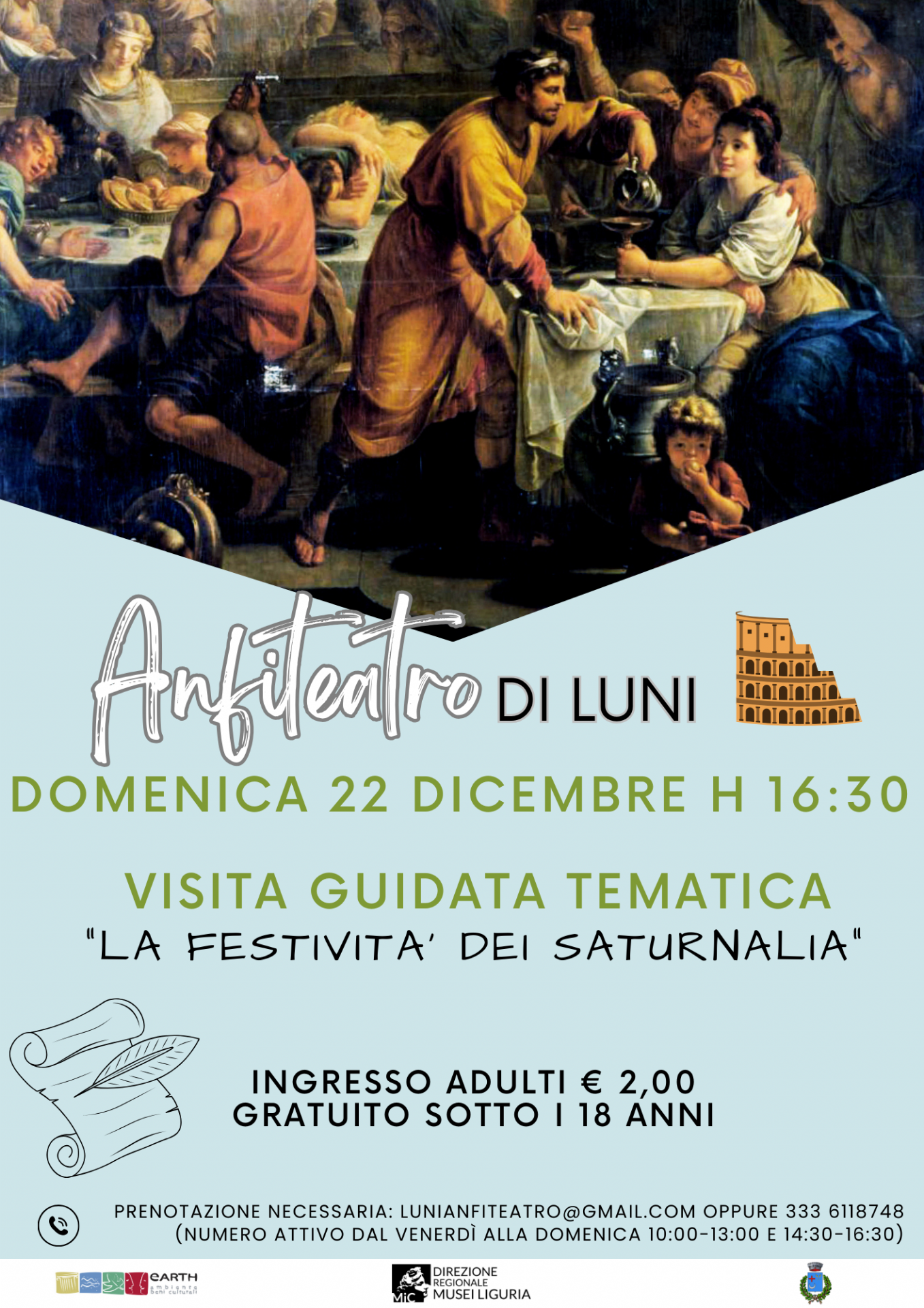 Domenica 22 Dicembre 2024 alle ore 16.30 c/o Anfiteatro Romano visita guidata "La Festività di Saturnalia".